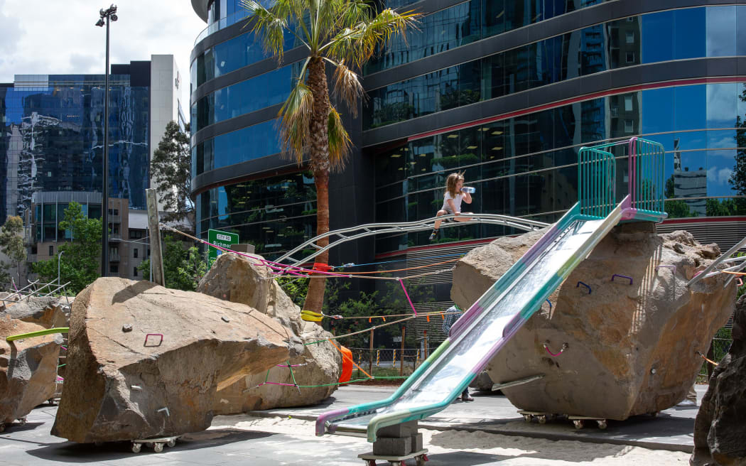 Mike Hewson's Rocks on Wheels' sculpture park playground in Melbourne is one of the artist's permanent installations which invite old and young to play, explore and take risks Photo: Mike Hewson