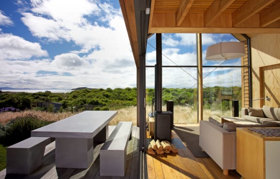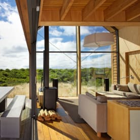 Taieri Mouth House 85m2, Taieri Mouth. Huge horizons of outstanding natural beauty contrast with the modesty of this small beach side home.