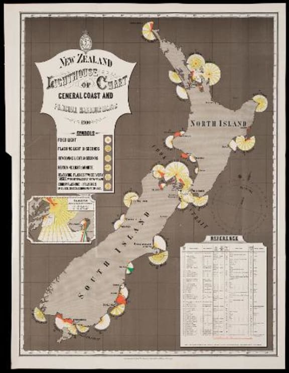 New Zealand lighthouse chart of general coast and principal harbour lights, 1900