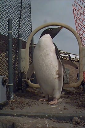 Penguin weighing itself on automatic scale