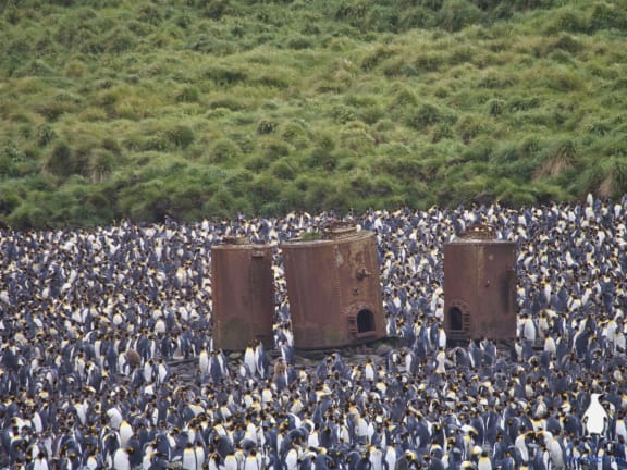 Joseph Hatch’s discarded digesters, King Penguin colony, Macquarie Island.