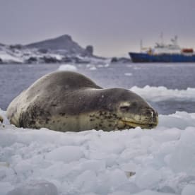 Leopard Seal and the Shokalskiy, Cape Royds, Antarctica.