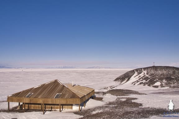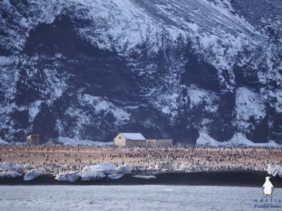 Borchgrevink’s Hut at Cape Adare, Antarctica, site of the world’s largest Adelie Penguin colony.