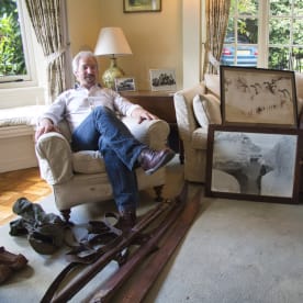 Lloyd Spencer Davis sitting in Levick’s chair in his house in Budleigh Salterton.