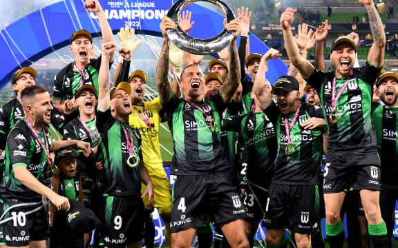 Western United players celebrate with the trophy. Photo:
