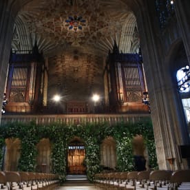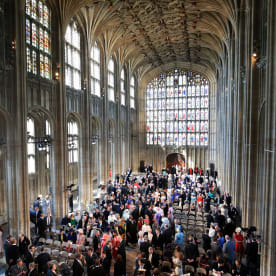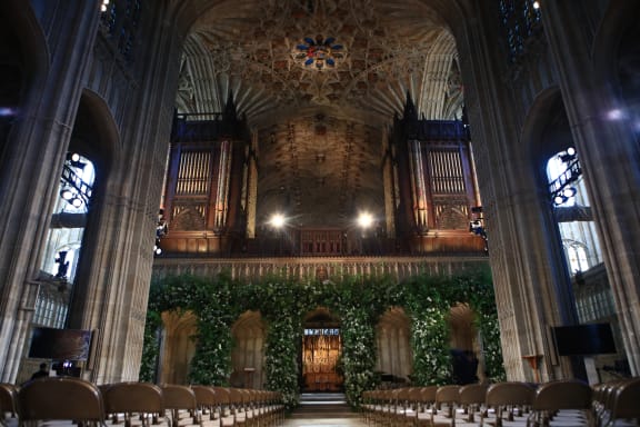 Flowers adorn the front of the organ loft inside St George's Chapel. Photo: AFP