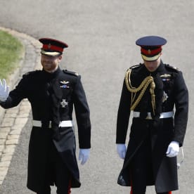 Prince Harry Duke of Sussex, arrives with his best man Prince William, Duke of Cambridge. Photo: AFP