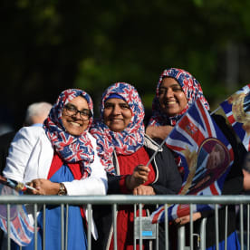 Well-wishers with Union Flags stand at the barriers on the Long Walk leading to Windsor Castle. Photo: AFP