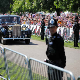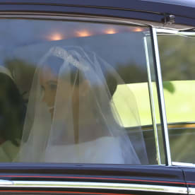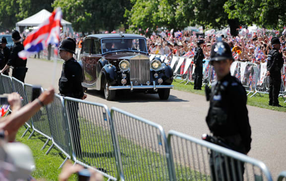 Meghan Markle is driven towards Windsor Castle on the Long Walk.