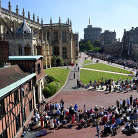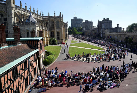 Guests gather inside the grounds of Windsor Castle as they wait ahead of the wedding ceremony. Photo: AFP