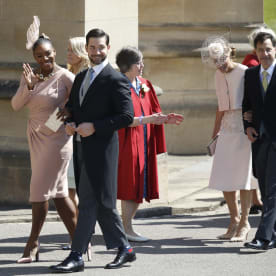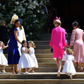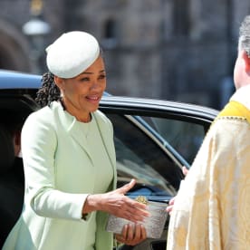 Meghan Markle's mother Doria Ragland (L) arrives for the wedding ceremony. Photo: AFP