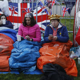 Well-wishers wake up on the Long Walk leading to Windsor Castle. Photo: AFP
