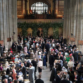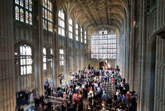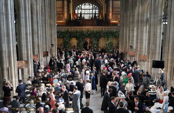 Guests are pictured as they arrive inside the Chapel ahead of the wedding ceremony. Photo: AFP