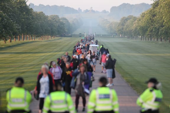 Well wishers arrive on the Long Walk leading to Windsor Castle. Photo: AFP