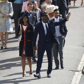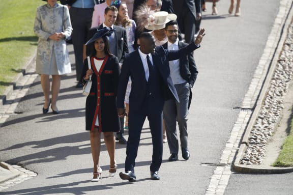 British actor Idris Elba (R) arrives with his fiancee Sabrina Dhowre (L) for the wedding ceremony. Photo: AFP