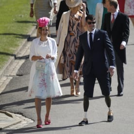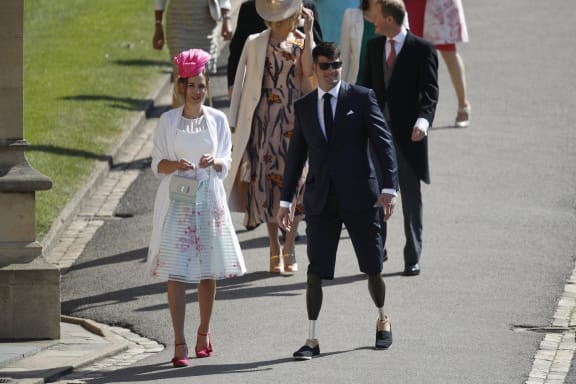 Prince's Harry's friend, British singer James Blunt (C) arrives for the wedding ceremony. Photo: AFP