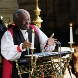 Bishop Michael Bruce Curry gives a reading during the wedding ceremony. Photo: AFP