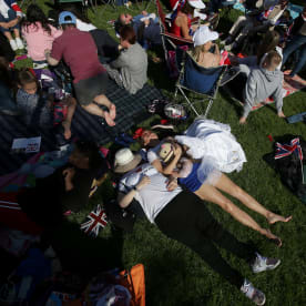 Well-wishers lay on the grass on the Long Walk. Photo: AFP
