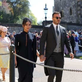 Former England footballer David Beckham arrives with his wife Victoria. Photo: AFP